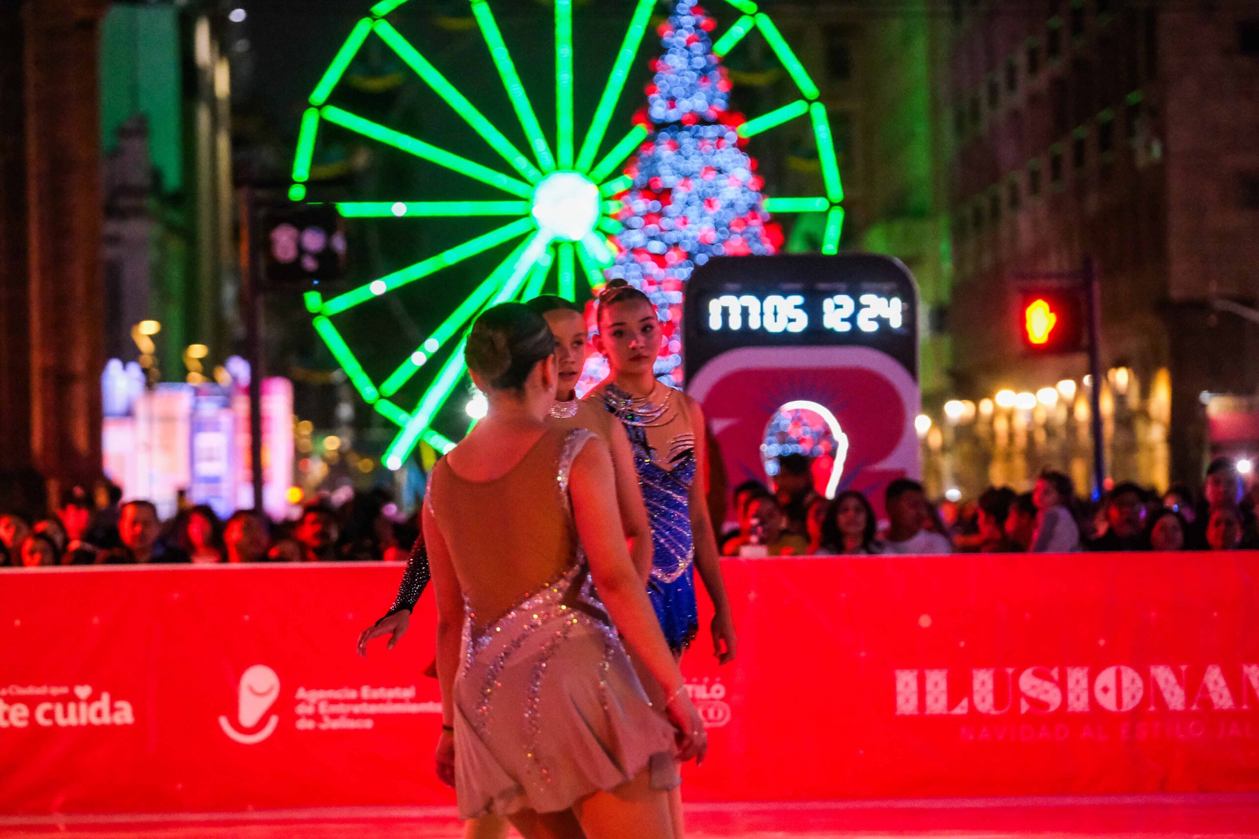 Esta noche, las y los asistentes a la inauguración disfrutaron de una exhibición de patinaje sobre hielo a cargo de la Asociación de Deportes Invernales del Estado Jalisco, con la participación de jóvenes promesas del patinaje artístico sobre hielo.