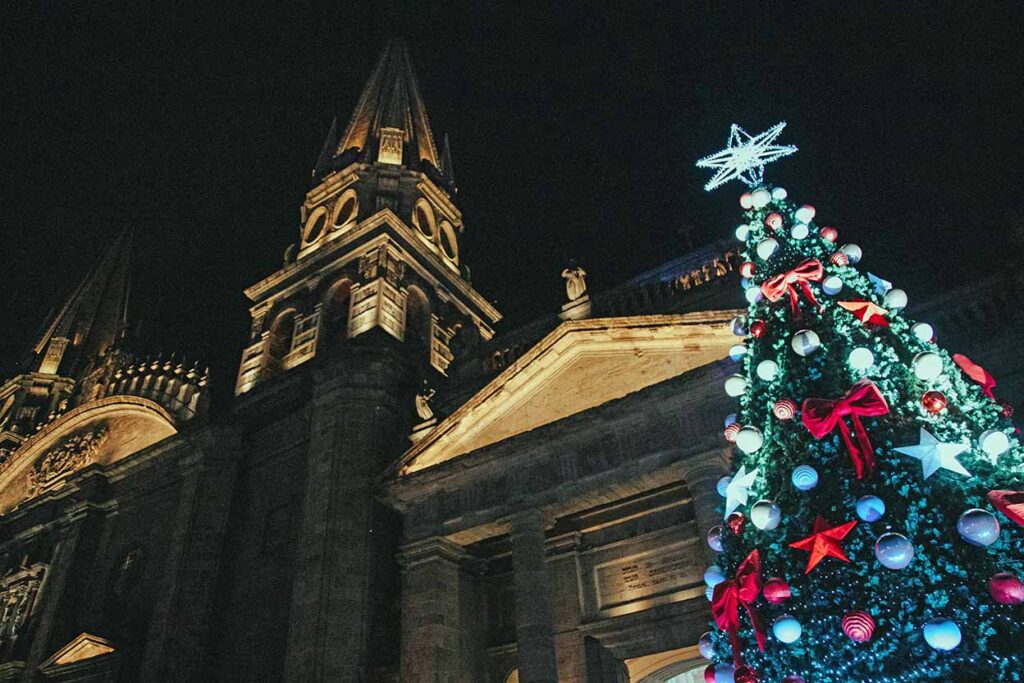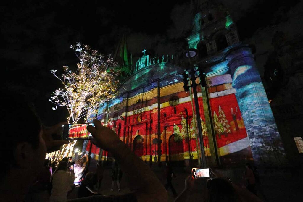 Del 15 de diciembre al 5 de enero, la Catedral de Guadalajara es escenario de un videomapping navideño, con funciones diarias a las 19:15, 20:15 y 21:15 horas, que integran luz, música y narrativas visuales alusivas a la temporada.