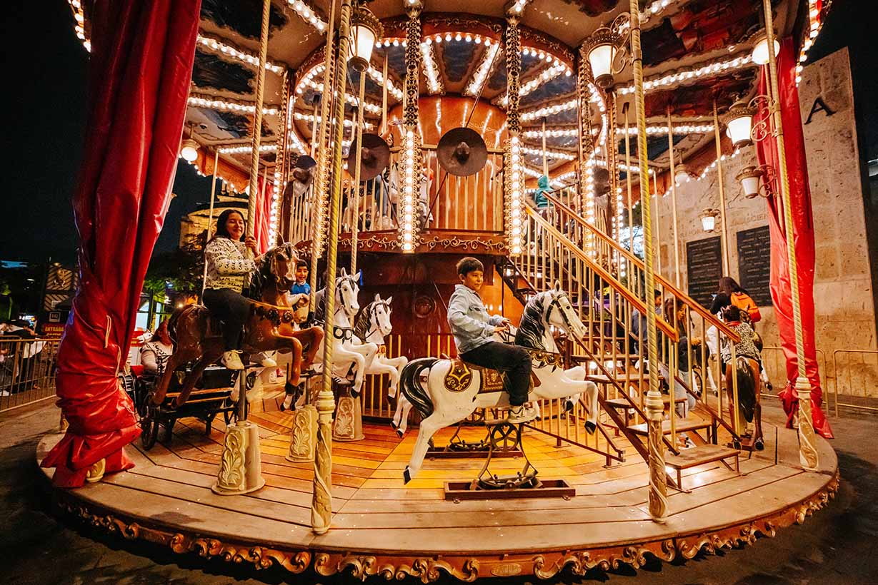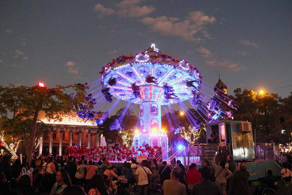 A partir del 17 de diciembre y hasta el 7 de enero, el Paseo Fray Antonio Alcalde alberga dos de los principales atractivos del festival: la rueda de la fortuna, que opera de 14:00 a 21:00 horas, y la pista de hielo, disponible de 9:30 a 21:30 horas, con un receso entre 14:30 y 16:30 horas. Ambos atractivos suspenden operaciones los días 24 de diciembre y 1 de enero.