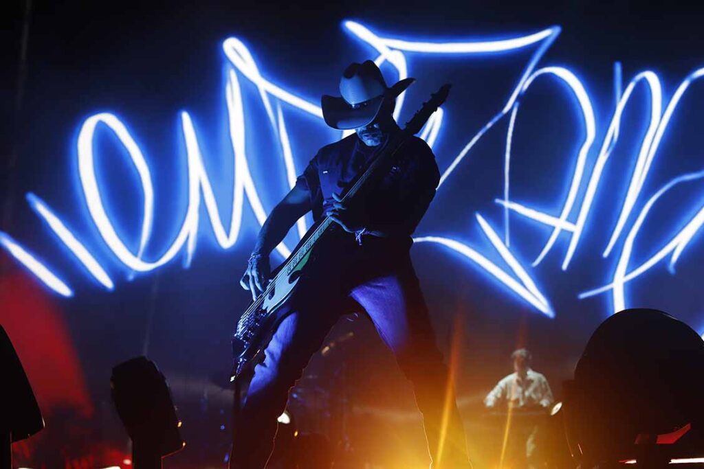 La noche comenzó con Kinky, que desató una ola de energía desde los primeros acordes de “Paso del Gigante”. Con su característico sonido electro-rock y una puesta en escena cargada de luces, ritmo y actitud, el quinteto convirtió el Auditorio Benito Juárez en una gran pista de baile.