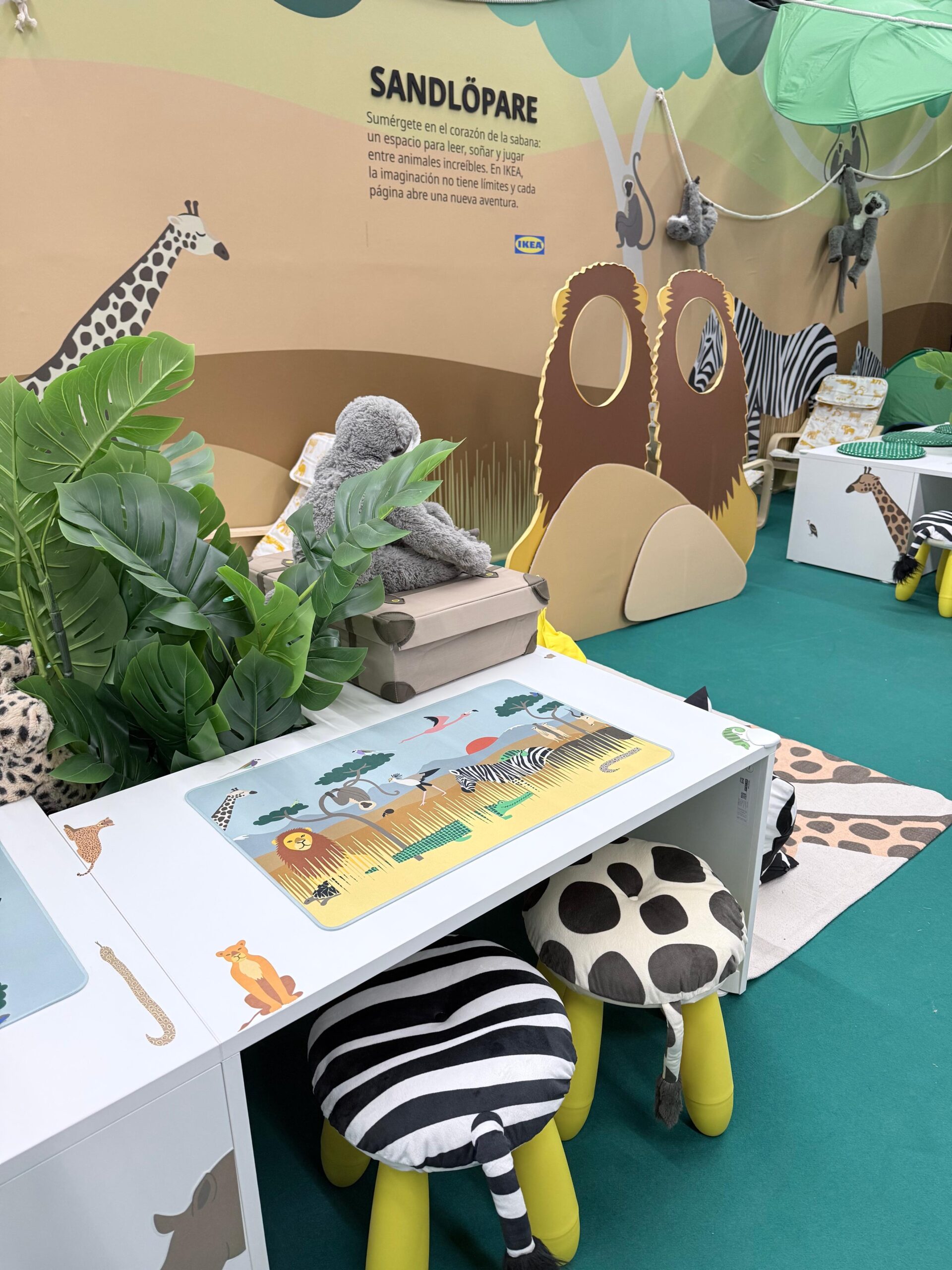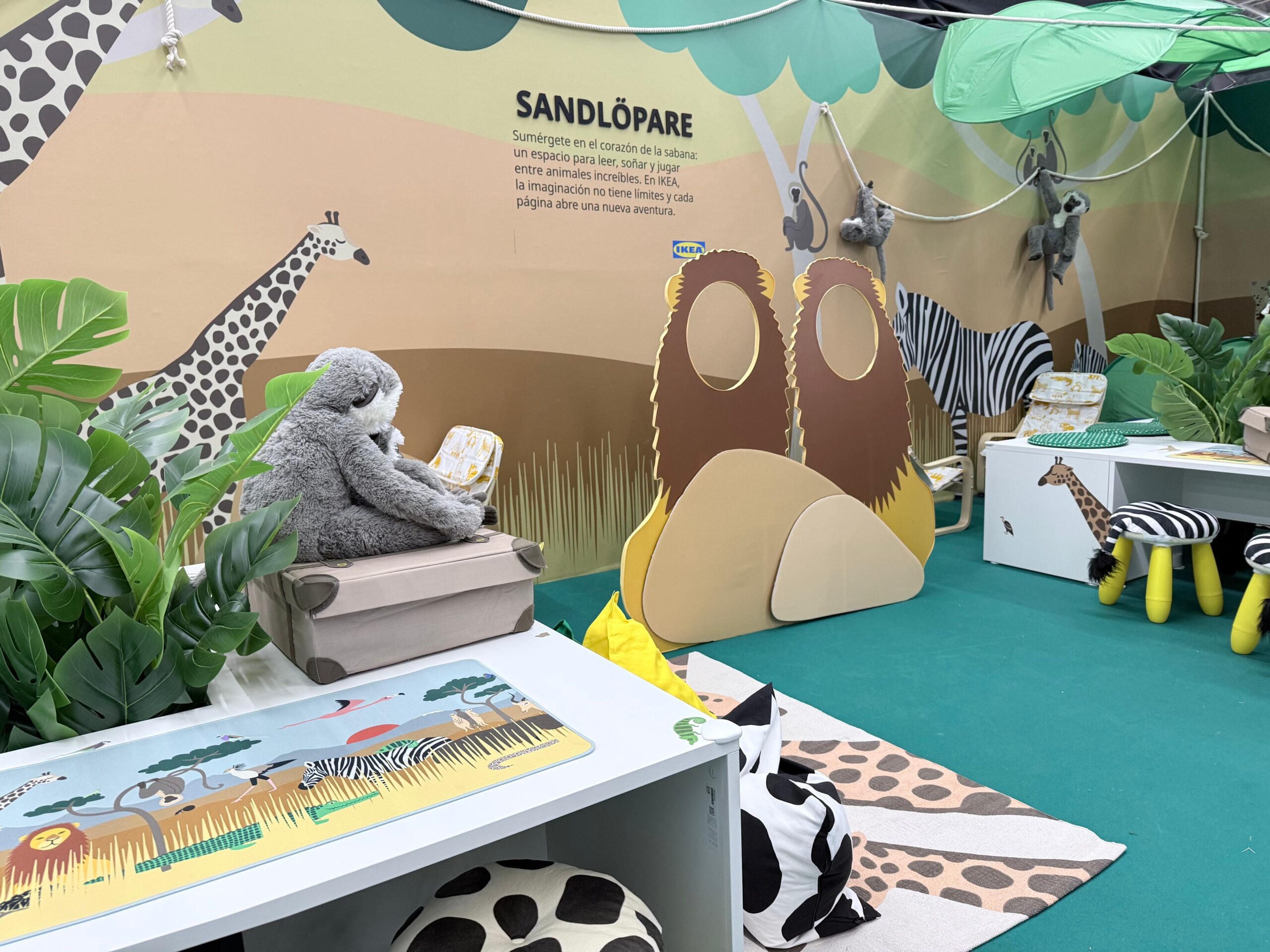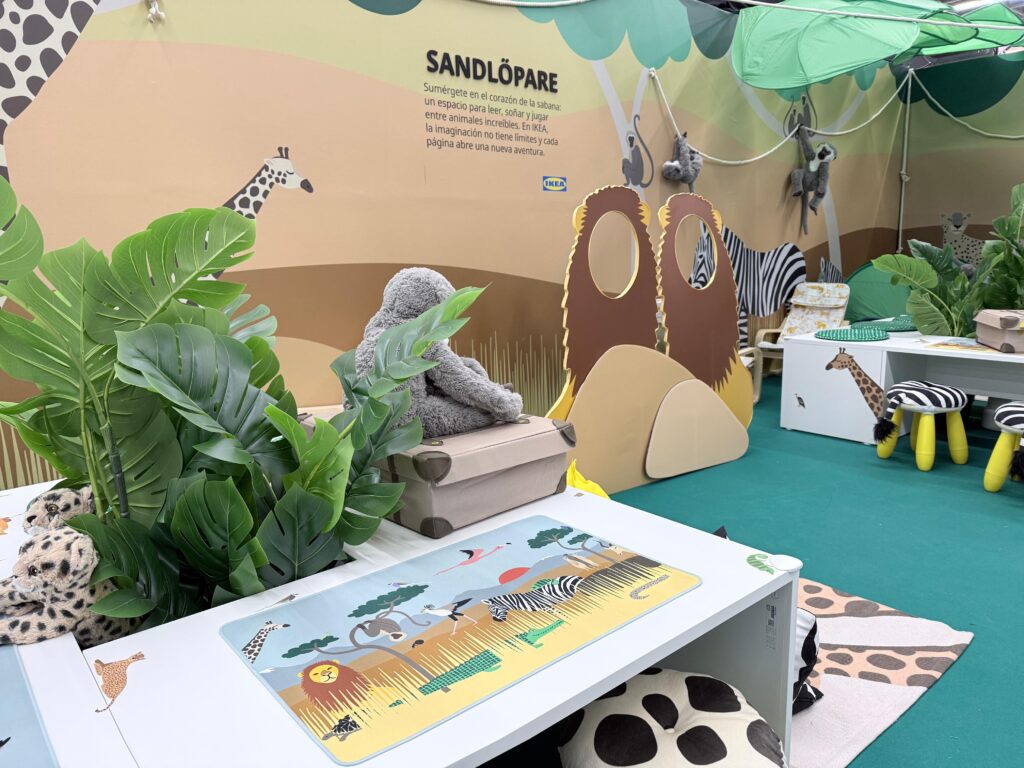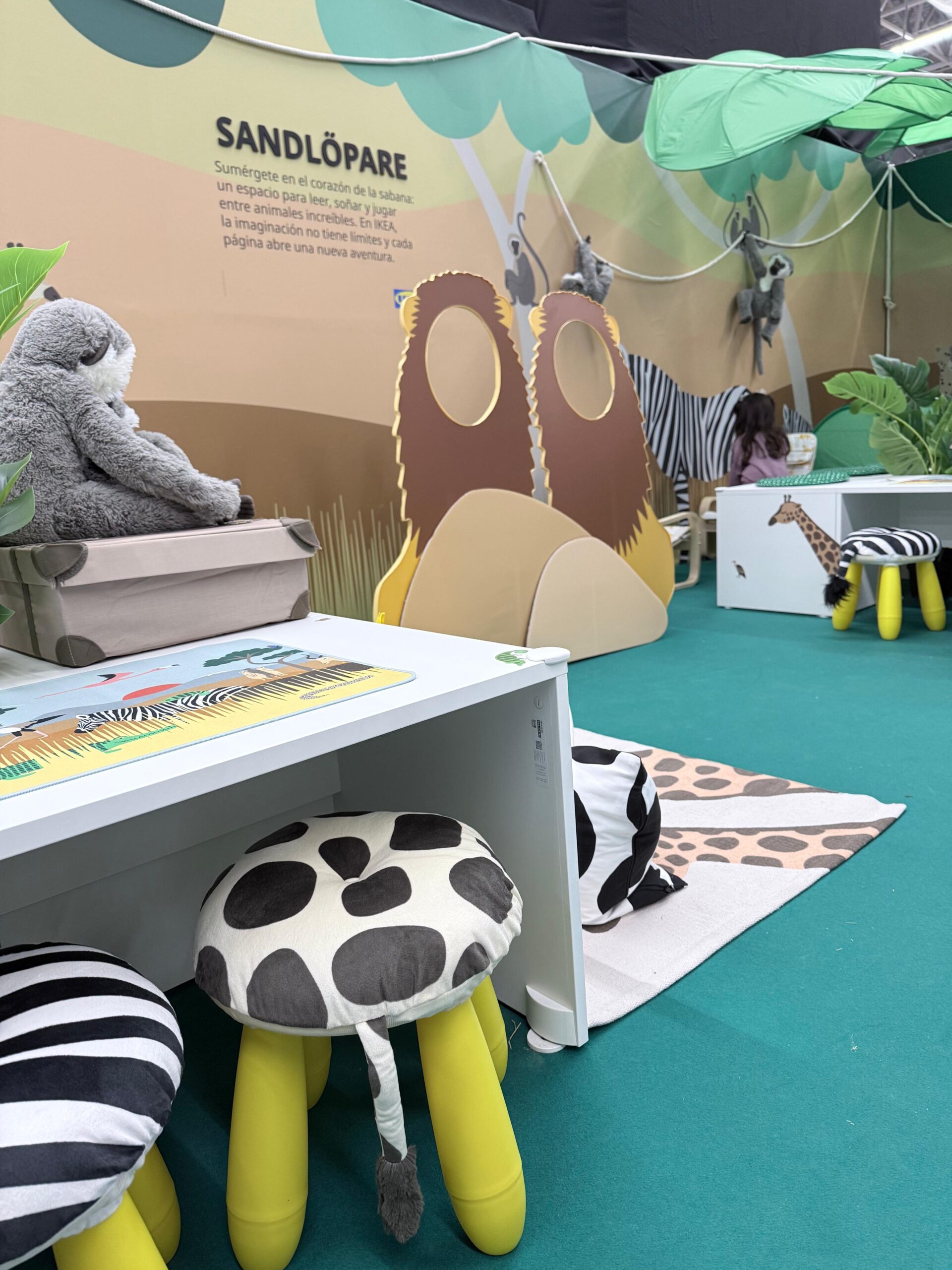 Un entorno lúdico donde el juego y la lectura se encuentran. Aquí, los más pequeños pueden explorar animales, colores y texturas que despiertan la imaginación, mientras hojean cuentos o inventan historias en un “safari” bajo techo.
